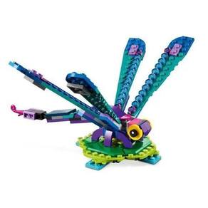 Vai até ao parque e desfruta de histórias divertidas com 3 animais exóticos. Podes brincar com o maravilhoso pavão e abrir a sua incrível e detalhada plumagem. Depois, reconstrói-o numa libélula com asas e cauda ajustáveis, pousada num nenúfar verde, ou numa colorida borboleta com asas ajustáveis num suporte em forma de flor. A escolha da brincadeira é tua com este incrível set de animais 3em1