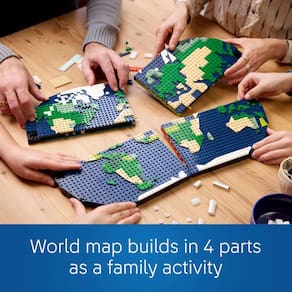 Uma atividade de construção criativa aguarda a família, incluindo crianças maiores de 14 anos, com este conjunto de construção Momentos de Viagens 41838 . Este conjunto LEGO imaginativo é um presente divertido para viajantes e famílias que adoram aventuras, e inclui um mapa do mundo para construir, um jato, 4 microveículos, 20 peças de localizações, 10 suportes de fotos e 5 livretos de instruções de construção. As famílias podem compartilhar suas memórias de viagens favoritas ou sonhar com novas viagens enquanto constroem o jato Wonderliner e o mapa. Depois, elas podem colocar o mapa em exposição para mostrar os países visitados ou viagens planejadas, e mudá-lo com cada viagem Este conjunto LEGO de viagens é um presente significativo e cheio de memórias ou uma atividade em família para ampliar a diversão criativa. Além disso, você e seus filhos podem aproveitar seus conjuntos ao máximo com o aplicativo LEGO Builder, que permite que vocês construam juntos, ampliem e girem seu modelo em 3D, acompanhem seu progresso e salvem conjuntos em um só lugar.