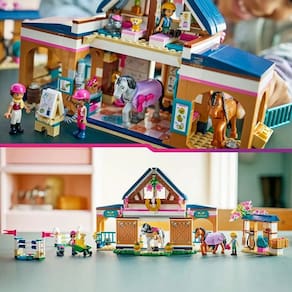 Prepare-se para momentos divertidos com o conjunto LEGO® Friends Estábulo e Academia de Equitação (42688), para crianças a partir de 7 anos. Recrie todas as etapas do cuidado com os cavalos enquanto Liann e Aliya têm aulas com a instrutora Cindy. Sele os dois cavalos e monte-os nos obstáculos. Depois, experimente diferentes tarefas, como transportar feno no carrinho de mão ou limpar e alimentar os cavalos. Após um dia agitado, é hora de dormir nas camas aconchegantes acima do estábulo. Este brinquedo de faz-de-conta vem com muitos acessórios para que as crianças possam galopar em uma aventura diferente a cada brincadeira. O conjunto inclui uma manta para cavalo, obstáculos, carrinho de mão, caixas de feno, cenoura, quadro branco, troféus, livros, camas e muito mais. Este conjunto é um ótimo presente para meninas e meninos que amam figuras de animais e brinquedos de cavalos. Com o aplicativo LEGO Builder, as crianças podem desfrutar de uma aventura de construção intuitiva, onde podem ampliar e girar os conjuntos usando instruções de construção em 3D, salvar conjuntos e acompanhar o progresso. O conjunto contém 735 peças. Conjunto de 735 peças com um brinquedo estável que mede mais de 17 cm de altura, 28 cm de largura e 16 cm de profundidade.