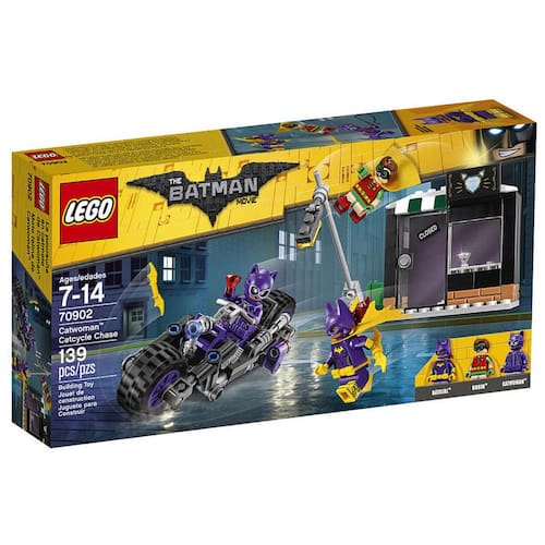 Brinquedo que segue a historia do filme na cena A Mulher-Gato Roubou A Joalheria E Está Prestes A Escapar Na Sua Poderosa Moto-Gato. Corra Para A Cena Do Crime Com O Robin E A Batgirl Para Interceptá-La. Cuidado Com O Chicote Da Mulher-Gato E Com O Poste Em Queda Que Ela Derruba Com Sua Moto. Ataque Com As Batarangs Da Batgirl E Salte Do Telhado Da Loja Para A Moto Da Mulher-Gato Com O Robin. Capture Essa Super-Vilão E Recupere As Joias Detalhes Técnicos: Marca: Lego Idade Recomendada: Acima De 7 Anos Composição Material: Plástico Conteúdo Da Embalagem: 139 Peças, 3 Mini Figuras Dimensões Da Embalagem: 26x14x6cm Peso: 350 g Do Fornecedor: 3 Meses Contra Defeitos De Fabricação Referência Do Modelo: 70902 Marca: Não Informado Ean: 673419267113