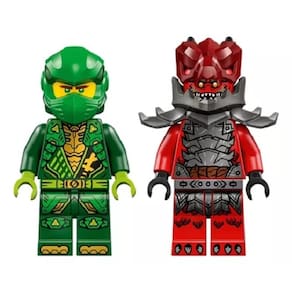 O kit de construção de faz de conta vem com 2 minifiguras NINJAGO: Lloyd com 2 acessórios de espada katana dourada e um guerreiro Dragonian vilão com um acessório de espada para as crianças encenar batalhas emocionantes. O conjunto de construção também inclui 2 elementos de iluminação para criar uma pequena pista de obstáculos para o carro de corrida.