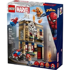 O conjunto montável contém 4 minifiguras: Duende Macabro em seu planador com bombas de abóbora; Homem-Aranha e Anti-Venom lançando teias; e Mary Jane com um robô-aranha articulado. Uma teia gigante e flexível presa ao prédio pode prender uma minifigura. No primeiro andar do apartamento, há uma cozinha. O andar superior tem um escritório e um quarto com uma cama dobrável, escrivaninha, computador, câmera e um microscópio. Um botão de pressão faz com que parte do prédio desmorone. As crianças podem conectar este conjunto de construção e brincadeira ao Homem-Aranha vs. Oscorp (76324) e empilhá-lo sobre o Homem-Aranha no Aranhaverso: Miles Morales vs. O Ponto (76311) para uma experiência de jogo ainda maior. Contém 394 peças.