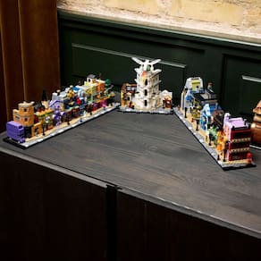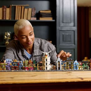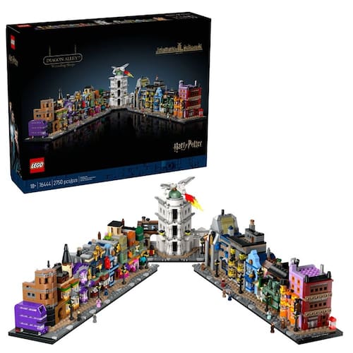 uja para um mundo mágico com este modelo de exposição LEGO® Harry Potter™ em microescala e intrincadamente detalhado das lojas de bruxaria do Beco Diagonal™ (76444). Este conjunto de bruxos construído com peças LEGO convida os fãs adultos das aventuras de fantasia de Harry Potter a recriar as lojas icônicas do Beco Diagonal, incluindo Weasleys' Wizard Wheezes™, a Sorveteria Florean Fortescue, Olivaras™, o Boticário do Sr. Mulpepper, além do Gringotts™ Wizarding Bank, o Caldeirão Furado e o QG do Profeta Diário. Cada edifício tem detalhes exteriores instantaneamente reconhecíveis e contém deliciosos ovos de Páscoa dentro. Este modelo de exibição mágica faz uma decoração de ambiente impressionante. Exiba-o como uma rua de 2 lados ou como uma longa fileira de edifícios ou divida-o em 5 seções para dar uma olhada mais de perto. Adicione as 12 microfiguras exclusivas de LEGO Harry Potter e o Knight Bus™ para despertar memórias de cenas clássicas. Este conjunto de construção em microescala faz parte de uma linha de conjuntos LEGO para adultos e é um super presente para você ou um presente de Harry Potter para outros fãs. Conjunto de bruxos LEGO® Harry Potter™ Diagon Alley™ para adultos – Capture a atmosfera encantadora do Beco Diagonal e os detalhes autênticos de suas lojas de bruxos com este micromodelo 12 microfiguras LEGO® Harry Potter™ – Harry Potter, Ron Weasley™, Hermione Granger™, Fred Weasley, George Weasley, Lavender Brown, Ginny Weasley™, Draco Malfoy™, Narcissa Malfoy, Sr. Borgin e mais Lojas Mini Diagon Alley™ – Crie versões em microescala de lugares icônicos como o Eeylops Owl Emporium, o Gringotts™ Wizarding Bank, o Leaky Cauldron e o Quartel General do Profeta Diário, além do Knight Bus™ Conjunto de exibição personalizável – Exiba o modelo como uma rua de dois lados ou como uma longa fileira de edifícios, ou divida-o em 5 módulos para dar uma olhada mais de perto em cada edifício Ideia de presente de Harry Potter™ para fãs adultos – Presenteie-se ou presenteie os fãs adultos das aventuras de fantasia de Harry Potter e colecionadores de memorabilia com este conjunto de construção de peças LEGO® do Beco Diagonal™ Instruções de construção 3D – Melhore sua experiência criativa com o aplicativo intuitivo LEGO® Builder, onde você pode ampliar e girar seu modelo em 3D durante a construção, acompanhar seu progresso e muito mais Harry Potter™ colecionável –– Este conjunto de 2.750 peças para montar e expor mede mais de 14 cm de altura, 88 cm de largura e 8 cm de profundidade quando apresentado como uma longa fileira de edifícios