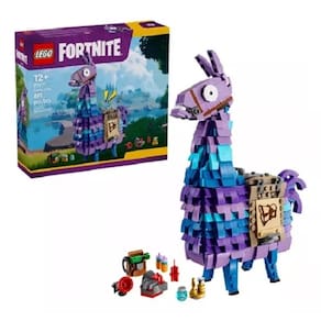 Os jovens jogadores terão horas de diversão montando a piñata de lhama Fortnite, que é conhecida como Supply Llama no videogame LEGO Fortnite. Repleta de detalhes divertidos para inspirar brincadeiras criativas, ela tem uma cabeça móvel e uma boca que abre, bem como uma sela e muitos equipamentos legais. Isso inclui um Grappler, Slurp Juice, Rough Ruby, Back Pack, Good Luck Charm, Slap Juice e Dynam. Baseados em itens emocionantes do LEGO Fortnite, esses objetos incentivam as crianças a recriar seus momentos favoritos de jogo fora da tela.