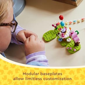 Terminadas as festividades, as crianças refazem o cenário edificável, movimentando-se pelas placas de base e reorganizando os balões de brinquedo, as decorações e os acessórios. Coloque toda a diversão personalizável da série de videogames Animal Crossing nas mãos das crianças. Uma excelente ideia de presente de aniversário para os fãs de Julian, este conjunto modular pode ser adicionado a outros conjuntos de construção criativos LEGO Animal Crossing para criar possibilidades de jogo ilimitadas. Brinquedo de construção criativo para crianças – Meninas e meninos com mais de 6 anos encenam cenas da série de videogames com LEGO® Animal Crossing™ Julian's Birthday Party e depois personalizam o conjunto para criar novas histórias Brinquedo infantil personalizável – vem com uma minifigura do cavalo Julian e muitos acessórios que as crianças reconhecerão da série de videogames Animal Crossing™ Brinquedo criativo