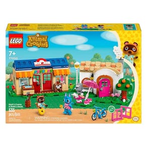 Uma ótima ideia de presente de aniversário para fãs de Animal Crossing, este conjunto contém detalhes reconhecíveis da série de jogos enquanto exploram a loja onde Tom Nook, o guaxinim, vende itens como a carta de instruções de projeto, sementes de flor, iscas e ferramentas em troca de Bells icônicos. As crianças tomam chá com o Tom Nook na casa da gata Rosie, que também está repleta de elementos conhecidos.