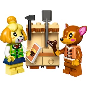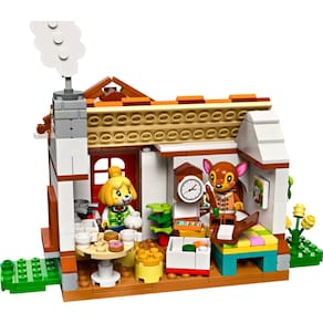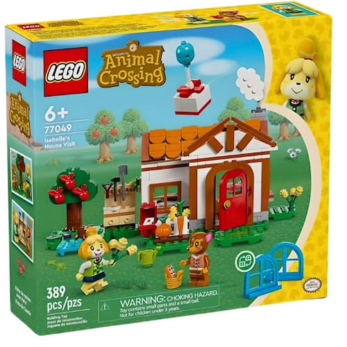 Meninas e meninos a partir de 6 anos criam suas próprias histórias inspiradas na série de videogames Animal Crossing com o brinquedo infantil Isabelle's House Visit (77049). Eles podem construir cenas reconhecíveis a partir de suas telas e depois levar a narrativa para onde sua imaginação quiser! As crianças fazem um tour pela casa da Fauna com Isabelle. O interior, decorado com as cores da Fauna, está repleto de detalhes reconhecíveis, bem como uma série de novos detalhes para inspirar as crianças a criar novas histórias para os personagens. Eles podem disparar o estilingue fingido para estourar o balão que carrega o presente, verificar se há mensagens no bloco do celular, colocar uma carta na caixa de correio ou ajudar as minifiguras a regar o jardim e pegar uma maçã da árvore. A bancada contém um cartão de receitas DIY e há uma surpresa escondida na árvore. As crianças reorganizam os móveis, trocam os caixilhos das janelas e até remontam as bases para escolher a aparência da casa.