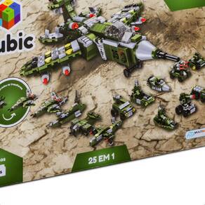 Informações do Produto Brinquedo De Encaixe Cubic 25 Em 1 Avião De Combate 576 Peças 24 Tipos De Veículos + De 6 Anos Multikids - BR1620