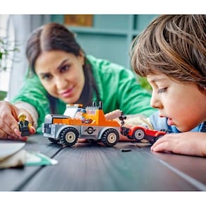Junte-se ao seu herói do dia a dia em aventuras divertidas com o conjunto de conserto de caminhão de reboque e carro esportivo lego para maiores de 4 anos. Este conjunto de construção criativo apresenta um caminhão de reboque de brinquedo com pneus resistentes, uma cabine de motorista e um guindaste de trabalho. Basta adicionar o carro esportivo e as minifiguras do motorista e do motorista para horas de brincadeiras imaginativas e contação de histórias.