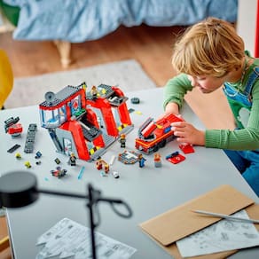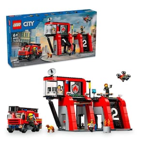 Desperte a imaginação das crianças com um kit de brinquedo LEGO City Quartel e Caminhão dos Bombeiros (60414) para maiores de 6 anos.