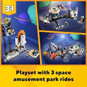LEGO Creator 3 em 1 Brinquedo Montanha Russa Espacial, Inclui Torre de Queda e Carrossel, 5 Minifiguras, Parque de Diversões para Crianças a partir de 9 Anos, 31142
