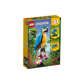 Os pequenos construtores e os fãs apaixonados por animais com mais de 7 anos podem viajar até às profundezas da floresta tropical para desfrutar de histórias repletas de ação com este set de construção LEGO Creator 3em1 Papagaio Exótico 31136 . Inclui um papagaio colorido que roda completamente o seu corpo enquanto está sentado num ramo da árvore, e move as suas asas e a cauda.