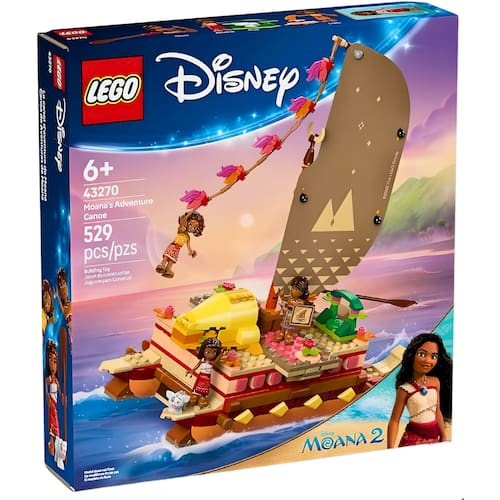 Descrição do produto : Presenteie os jovens contadores de histórias de 6 anos ou mais com um divertido kit de construção com este conjunto de construção LEGO | Disney Moana's Adventure Canoe (43270). O brinquedo de construção de fantasia tem uma canoa de casco duplo com uma vela têxtil impressa, um lei hulu de corda para encontrar a direção do vento, um convés superior removível com espaço de estar abaixo, além de uma pequena fogueira e espaços para dormir no convés. Há também muitos elementos de início de história para brincar, junto com minibonecas LEGO | Disney de Moana, Loto, o construtor naval, e Moni, o remador (que adora contar histórias), além de uma figura de porco Pua LEGO | Disney. : Detalhes técnicos : Marca: Lego : Referência: 43270 : Idade recomendada: 6 : Quantidade de peças: 529 : Possui Luzes: Não : Possui Sons: Não : Dimensões aproximadas da embalagem: 28 x 25 x 6 cm (A x L x C) : Ean: 673419404181 :