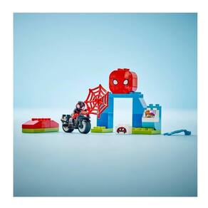 Crianças em idaar com mais de 2 anos que adoram jogos de ação recriam cenas do programa de TV Disney+ Spidey e seus incríveis amigos com o brinquedo Spin's Motorcycle Adventure. Inclui uma figura LEGO DUPLO Spin, uma moto de brinquedo dirigível, um QG e rampa de brinquedo para construir e reconstruir, um elemento de teia e uma peça de aranha-robô Trace-E. As crianças brincam de ser Spin, realizando acrobacias na motocicleta de brinquedo, pegando tijolos no elemento web ou formando parceria com o robô-aranha Trace-E.