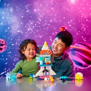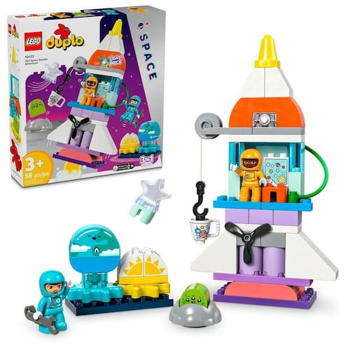 3... 2... 1... decole em brincadeiras eletrizantes com o brinquedo Aventura no Ônibus Espacial 3em1 (10422) para construir várias vezes. As imaginações alçam voo enquanto crianças maiores de 3 anos brincam de astronauta explorando a galáxia em um brinquedo de nave espacial, conhecendo alienígenas e aprendendo sobre o sistema solar.