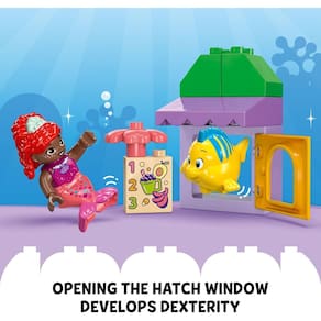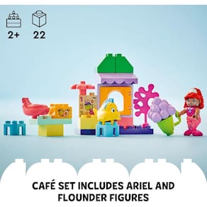 Este conjunto de construção educacional também ajuda a desenvolver o pensamento lógico enquanto as crianças montam peças fáceis de manusear para recriar cenas do programa de TV. Brinquedo de construção para fãs da Pequena Sereia a partir de 2 anos – LEGO® DUPLO® | Disney Ariel e Flounder's Café Stand brinquedo de construção com elementos de frutas para brincadeiras divertidas de comida para crianças pequenas 2 personagens familiares – Este brinquedo de construção para crianças em idade pré-escolar vem com 2 figuras LEGO® DUPLO®: Ariel e Linguado do programa de TV Disney Junior Ariel Brinquedo de construção educativo para crianças em idade pré-escolar – As crianças aprendem os nomes das frutas enquanto se imaginam pedindo smoothies e saindo com os amigos neste colorido café subaquático Desenvolve destreza - Este brinquedo de construir e reconstruir foi habilmente projetado para ajudar as crianças a aprimorar suas habilidades motoras finas, classificação de cores e coordenação olho-mão enquanto montam os tijolos fáceis de manusear Um presente para os pequenos fãs da Disney – Esta é uma ideia divertida de presente a qualquer hora para crianças a partir de 2 anos que amam o programa de TV Disney Junior Ariel Conjuntos de construção de qualidade – os conjuntos de construção LEGO® DUPLO® utilizam tijolos e elementos que foram testados ao máximo para garantir que cumprem os exigentes padrões de segurança infantil Brinquedo de aprendizagem infantil para crianças em idade pré-escolar