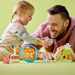As crianças a partir de 18 meses podem divertir-se muito enquanto aprendem e desenvolvem capacidades com meu primeiro cachorrinho e gatinho com sons (10977). escute e aprenda com animais adoráveis este adorável conjunto de animais contém um gatinho e cachorro fofinhos, feitos com 2 peças para bebês. seu pequeno fã de animais vai adorar colocar seus pets no brinquedo anel rolante. a função de som incluída para cada animal aumenta ainda mais as possibilidades de brincar e aprender com sons que indicam hora de comer, brincar, dormir etc. uma maneira fantástica de as crianças em idade pré-escolar aprenderem as rotinas diárias. aprendizagem divertida para bebês os pais podem compartilhar marcos preciosos de desenvolvimento, pois os brinquedos lego duplo colocam nas mãos das crianças diversão ilimitada, autoexpressão e exploração alegre. Ean: 673419356817