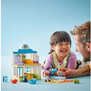 Crianças de 2 anos ou mais exploram suas emoções com o conjunto de brinquedos LEGO® DUPLO® Town Primeira Vez: Visita ao Médico (10449).