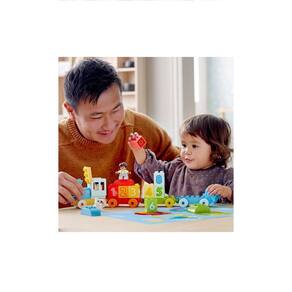 Agarre o novo e colorido conjunto LEGO. Com 10 peças com números para os bebês carregarem, descarregarem, empilharem e ordenarem, e também figuras DUPLO de menina, menino e cão – a diversão de brincar e aprender nunca acaba. Os bebês podem colocar e tirar as peças com números dos vagões, alinhá-las na ordem correta e construir uma parede de números com elas. Com rodas móveis, um teto que abre e personagens DUPLO simpáticas para compartilhar a diversão, o Trem dos Números transportará seu bebê para um mundo de brincadeira de desenvolvimento imaginativo!• Inclui 10 peças com números transportadas por vagões de trem de empurrar e avançar, e também figuras LEGO® DUPLO® de menino, menina e cão para inspirar a brincadeira de faz-de-conta imaginativo.• O conjunto mede mais de 10 cm de altura e 47 cm de comprimento e combina facilmente com outros conjuntos LEGO® DUPLO® para inspirar ainda mais possibilidades de jogo imaginativas.• Um pôster tapete de jogo fácil para bebês inclui imagens em tamanho real do conjunto, para mostrar como as peças se encaixam para criar o trem.Características TécnicasMarca: LegoCódigo Fabricante: 10954Número de Peças: 23Idade mínima recomendada: +1 e meioDimensões da Embalagem (AxLxC): 19 x 35 x 9cmPeso: 250gGarantia do Fabricante: 90 dias contra defeitos de fabricação.Garantia do Vendedor: 7 diasProduto possui certificação de segurança compulsória, certificado pela INNAC, organismo acreditado pela CGCRE do Inmetro.
