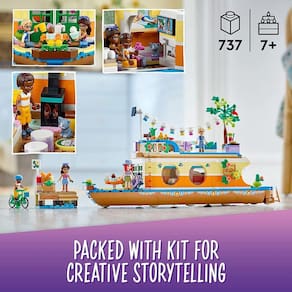 Lego Friends 41702 - Casa-Barco do Canal Encante as crianças com 7 anos ou mais que se preocupam com o planeta com a LEGO Friends Casa-Barco do Canal (41702). Elas vão adorar ajudar a miniboneca Mia e seus amigos a restaurar um barco antigo e cultivar alimentos para a comunidade. A imaginação zarpou.Esse presente de aniversário criativo para crianças está repleto de recursos. No deck fica um jardim com caixas de vegetais e frutas, uma macieira e uma área de descanso decorada com pisca-piscas. As crianças podem vender seus produtos na barraca do píer. O deck é removível e a lateral é articulada para revelar uma cabine com cozinha para fazer cupcakes, área para dormir, fogão a lenha, mesa de jogos, painéis solares e banheiro. Modelo de casa-barco ecológico com estilo retrô - Deixe as crianças viverem um estilo de vida ecologicamente correto a bordo de LEGO Friends Casa-Barco do Canal (41702), que vem com uma horta no convés. Muitos papéis para interpretar - Esse barco vem com 4 minibonecas, incluindo a Mia de LEGO Friends, um animal de brinquedo, uma bicicleta e uma barraca de mercado separada para despertar horas de brincadeiras imaginativas. Muita diversão para os pequenos amantes da natureza - As crianças que cuidam do meio ambiente terão prazer em cultivar seus próprios produtos, ajudar a equipe a pedalar o barco e vender sua comida para que a comunidade possa fazer compras locais. Faz de conta sem fim - Com esse conjunto LEGO Friends, as crianças podem consertar o barco, regar as plantas com o regador, jogar no console de jogos ou se divertir com os amigos e brincar com o gatinho no convés. Recursos abundantes - No convés há um chuveiro e acessórios de jardinagem. O deck é removível para facilitar o acesso à cabine com sua cozinha e utensílios de cozinha, estação de jogos, área de dormir e banheiro. Para crianças de 7 anos ou mais que se preocupam com o planeta - Emocione as crianças com habilidades de jardinagem com este conjunto de 737 peças, que também é um presente de aniversário criativo para crianças que gostam de modelos de veículos. Amplie a brincadeira - Medindo mais de 17cm de altura, 33cm de comprimento e 12cm de largura, esse conjunto é compatível com a Casa da Árvore da Amizade (41703) e o Veículo de Plantação de Árvores (41707). Guia interativo para construções envolventes - As instruções digitais oferecem um guia passo a passo para uma experiência de construção mais divertida, acessado clicando em Instructions PLUS no aplicativo LEGO Instruções de Construção. Uma comunidade solidária - Desenvolva a imaginação das crianças com os brinquedos Heartlake City, enquanto elas se juntam aos personagens LEGO Friends para tornar o mundo um lugar melhor, peça por peça. Um produto de qualidade - Os novos brinquedos LEGO cumprem as normas mais rigorosas da indústria para garantir que sejam consistentes, compatíveis e encaixam e desencaixam sempre com consistência e é assim desde 1958. Segurança garantida - As peças LEGO são submetidas a queda, aquecidas, comprimidas, torcidas e analisadas para garantir que cumprem normas rigorosas de segurança a nível global. Produto possui certificação de segurança compulsória, certificado pela INNAC, organismo acreditado pela CGCRE do Inmetro. Garantia: 90 dias contra defeitos de fabricação.