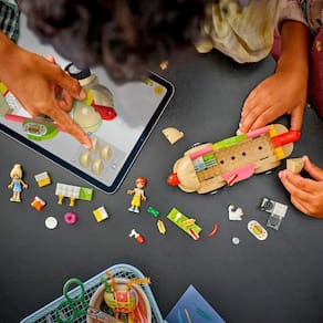 Crianças maiores de 4 anos que adoram brincar de comida podem criar várias histórias diferentes com este brinquedo LEGO Friends Food Truck de Cachorro-Quente (42633). Esse conjunto ajuda as crianças a aprenderem a construir e inclui um caminhão construível e 2 minibonecos, além de um personagem de gato e acessórios de comida para inspirar brincadeiras.
