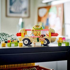 - Crianças a partir de 4 anos que adoram brincar de brincar com comida podem criar muitas histórias diferentes com este brinquedo LEGO Friends Caminhão de Comida para Cachorro-Quente 42633 .