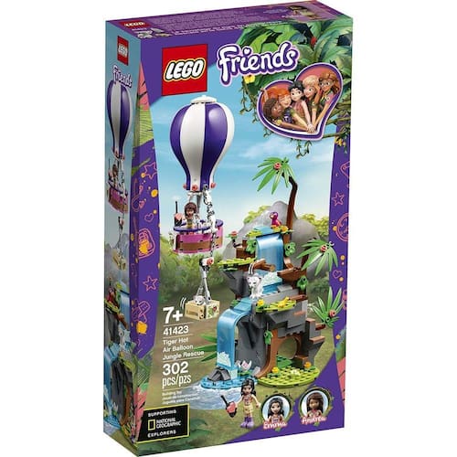 Elas podem brincar de subir até os céus para resgatar um filhote de tigre de brinquedo no alto de uma cachoeira. Este conjunto vem com 2 filhotes de tigre, além de um papagaio e uma tartaruga bebê de brinquedo. Neste conjunto de resgate de animal na selva há uma riqueza de possibilidades de brincadeiras de aventuras selvagens. As crianças podem observar os bebês tigres em suas cavernas ou explorar a cachoeira rochosa e descobrir diamantes entre as pedras. Se quiserem aumentar a brincadeira, podem usar a função de inclinação para derrubar os personagens nas águas borbulhantes e iniciar um ousado resgate em balão de ar quente.
