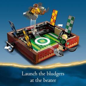 Um ótimo presente para fãs de Harry Potter maiores de 9 anos, este conjunto inclui as minifiguras do Harry Potter, Draco Malfoy™, Cedrico Diggory e Cho Chang, além de 10 cabeças adicionais (6 tons de pele diferentes) e 10 estilos de cabelo adicionais para criar jogadores únicos. A caixa também contém equipamento para criar 3 jogos de Quadribol diferentes: arremesse a Goles pelo aro do gol, lance o balaço em direção ao batedor e capture o Pomo de Ouro. Ao final do jogo, após a apresentação da taça das casas, tudo pode ser guardado no baú pronto para as crianças levar consigo para qualquer lugar.
