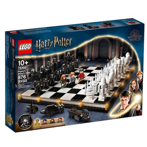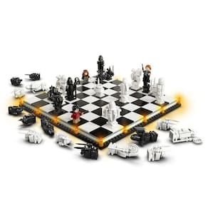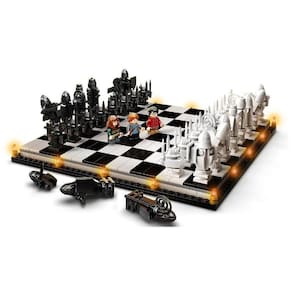 As crianças vão garantidamente ficar cativadas por horas sem fim quer seja desfrutando de um jogo de xadrez ou representando aventuras infindáveis com personagens dos filmes de magia. O conjunto inclui as minifiguras de Harry Potter, Hermione Granger e Ron Weasley para inspirar animação criativa nas crianças. Para celebrar 20 anos de magia com Harry Potter, o conjunto também inclui uma minifigura dourada exclusiva do Professor Severo Snape e 3 peças que representam cartas de feiticeiro aleatórias para as crianças colecionarem. Imagens meramente ilustrativas