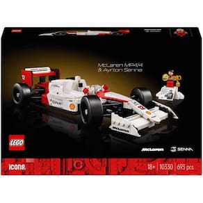 Celebre o mundo do automobilismo com este projeto de construção LEGO® Icons para adultos. O McLaren MP4/4 1988 é listado como um dos carros de F1 mais vitoriosos de todos os tempos. Desenvolvida em colaboração com a McLaren e a marca SENNA, esta réplica em escala contém detalhes precisos e funções realistas. O conjunto também conta com expositores para o carro e a minifigura incluída do Ayrton Senna.