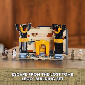 Kit de Construção com 4 Minifiguras - O conjunto vem com 4 minifiguras: Indiana Jones com seu famoso chapéu e chicote, Marion Ravenwood, Sallah e uma múmia. Há também muitas cobras no chão e que podem ser empurradas através de uma parede.