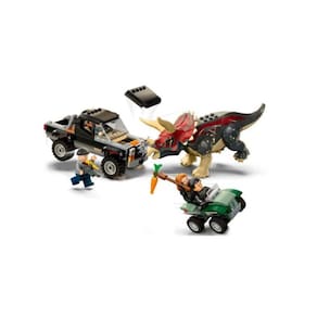 LEGO Jurassic World Dominion Emboscada de Triceratops Deixe a ação esmagadora e rápida começar com este incrível conjunto de brinquedo Lego Emboscada de Triceratops 76950 com 210 peças. O presente perfeito para crianças criativas que gostam de veículos espetaculares e dinossauros. Contém uma caminhonete com parte dianteira que se solta e que é facil de reconstruir após ter sido atingida pelo boneco Triceratops, e também um buggy de fuga. Inspirado no filme Jurassic World Dominion inclui 4 mini figuras: Claire Dearing, Franklin Webb e 2 guardas da segurança, e também um tranquilizador e cenoura para inspirar as crianças. Homologação Inmetro: 0240/22-BQ-04 Ean: 673419344890
