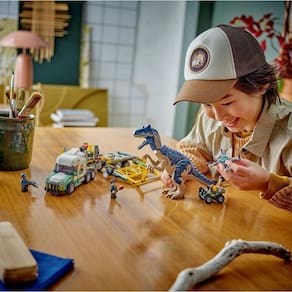 Novas e inesperadas aventuras com animais estão reservadas para fãs a partir dos 8 anos com este modelo dosaur missions: allosaurus transport truck repleto de possibilidades de dramatização. Este conjunto de brinquedos de dinossauro lego Jurassic World é um divertido presente para festas infantis. Ele permite que as crianças contem histórias de ação ilimitadas usando a figura de brinquedo moldada do Allosaurus com pernas móveis, cabeça e boca que abre, além de minifiguras de Darius, Kenji, Yaz e guarda. Há um semi-caminhão com teto e capô que abrem, uma cabine para 3 minifiguras com uma cama, um trailer-gaiola com suportes frontais e uma rampa traseira que abre, uma gaiola que abre com um acionamento de alavanca, um quadriciclo e um drone, além de muitos de elementos iniciais da história.