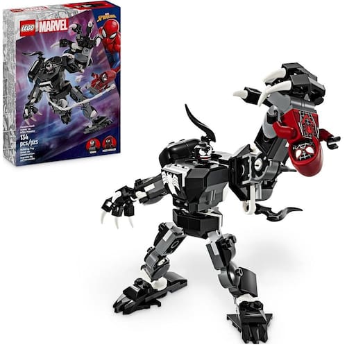 - O kit de montagem inclui uma armadura robotizada, 2 minifiguras (Venom e Miles Morales) e acessórios;