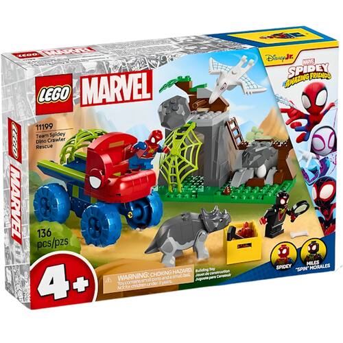 Descrição do produto : " Presenteie os fãs de Spidey e seus amigos incríveis com o Team Spidey Dino Crawler Rescue (11199), um conjunto de dinossauros para construir e brincar criado para crianças de 4 anos ou mais. Este brinquedo de caminhão dinossauro montável apresenta super-heróis, dinossauros e acessórios divertidos para inspirar brincadeiras imaginativas para meninos e meninas que aumentam sua confiança e habilidades de resolução de problemas. Este conjunto de brinquedos LEGO montável inclui minifiguras do Spidey e Miles ""Spin"" Morales e 2 figuras de dinossauros montáveis: Ghost-Spider como um pterodáctilo e Rhino como um tricerátopo. Há o caminhão LEGO Dino Crawler do Spidey com uma grande teia presa na parte traseira, um recurso de queda de pedras operado por gatilho, um ovo de dinossauro para revelar e uma teia que pode ser abaixada para prender o vilão. Instruções intuitivas são fornecidas na forma de um guia de história com imagens coloridas e bolsas separadas contêm tijolos e um grande tijolo inicial para tornar a construção rápida e fácil. : " Detalhes técnicos : Marca: Lego : Referência: 11199 : Idade recomendada: 4 : Quantidade de peças: 136 : Possui Luzes: Não : Possui Sons: Não : Dimensões aproximadas da embalagem: 25 x 19 x 6 cm (A x L x C) : Ean: 673419404365 :