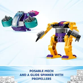 – O vilão Zola se encaixa em um mecanismo que tem pernas ajustáveis ??e garras para agarrar minifiguras, e o girador deslizante tem hélices rotativas, uma cabine que pode ser aberta e um grande elemento de teia Acessórios autênticos