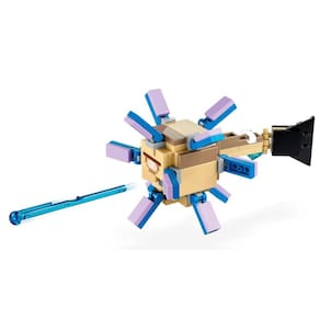 as crianças assumem um desafio repleto de ação nesta envolvente missão de minecraft situada sob o oceano. Primeiro, eles devem construir um monumento em meio ao colorido recife de coral. Há tesouros escondidos para encontrar, mas também 2 mobs icônicos do minecraft: um guardião e um guardião ancião, que estão determinados a detê-los. Armados com um tridente e auxiliados por 3 axolotls úteis, as crianças devem afastar as multidões hostis para continuar sua missão. O perigo adicional vem de um atirador com mola que lança um míssil laser com um movimento da cauda do guardião maior. Aviso: imagens meramente ilustrativas e tons de cores podem variar da imagem