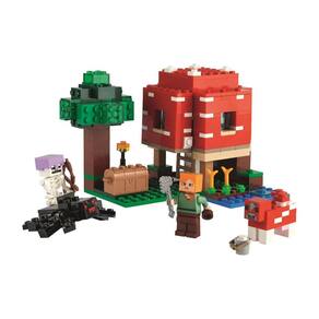Os jogadores de Minecraft podem ser criativos na casa cogumelo gigante. Suas paredes e teto se elevam para facilitar o acesso à mesa de artesanato e aos móveis. Do lado de fora, o herói de Minecraft Alex usa uma tigela para coletar a sopa da coguvaca. Mas os planos mudam quando um esqueleto jóquei aranha surge na cena. As possibilidades de brincadeiras imaginativas são ilimitadas quando as crianças entram na casa cogumelo de Minecraft.
