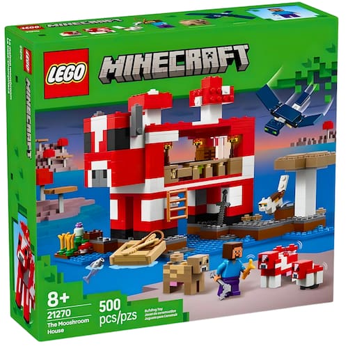 Descrição do produto : " O brinquedo LEGO Minecraft Mooshroom House (21270) é perfeito para jogadores de Minecraft e crianças que adoram construir casas, cuidar de animais e se defender de ataques aéreos ocasionais! Este conjunto de brincadeiras envolvente é um excelente presente de Minecraft para meninas e meninos de 8 anos ou mais. Situado na ilha dos cogumelos, este brinquedo de construção de casas LEGO Minecraft inclui o popular personagem Steve, bem como um mooshroom vermelho, um mooshroom vermelho bebê, um mooshroom marrom, um gato malhado e o fantasma voador hostil. O conjunto de jogos é repleto de elementos que aparecem no jogo, incluindo uma pequena área de fazenda com trigo, cogumelos e uma planta carnívora crescendo ao lado de uma composteira. Os acessórios incluem uma vara de pescar, bacalhau, enxada, espada de netherita, tigela, barco com remos, baú, fornalha, mesa de artesanato, estante, pão e uma cama. : " Detalhes técnicos : Marca: Lego : Referência: 21270 : Idade recomendada: 8 : Quantidade de peças: 500 : Possui Luzes: Não : Possui Sons: Não : Dimensões aproximadas da embalagem: 28 x 26 x 8 cm (A x L x C) : Ean: 673419404709 :