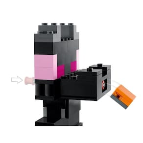 Dê vida ao mundo de Minecraft Os jogadores podem criar aventuras de batalha PVP emocionantes na lendária Arena do End. O conjunto inclui figuras do Guerreiro do End, Arqueiro do Dragão, enderman e shulker, proporcionando uma experiência autêntica do jogo. Além disso, o conjunto apresenta acessórios conhecidos do Minecraft, como a cenoura dourada e a poção.