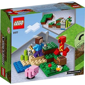 Repleto de personagens, acessórios e recursos de Minecraft, LEGO Minecraft The Creeper Ambush (21177) é um grande presente para crianças de 7 anos. Há muito para manter as crianças ocupadas nesta aventura compacta e clássica de Minecraft. Um dos personagens heróis do jogo, Steve, é acompanhado por um bebê porco, uma galinha bebê e uma Creeper Explodindo. Primeiro, as crianças ficam criativas com minério de ferro na mesa de criação. Em seguida, eles cuidam dos animais, cuidam de sua cultura de cana-de-açúcar e decoram a cena com papoulas. Em seguida, eles usam uma espada para combater o temido Creeper Explodindo. A batalha culmina em crianças empurrando o bloco especial de detonação, que explode o Creeper Explodindo no ar. Quando a ação acaba para o dia, este conjunto repleto de diversão fica ótimo em exibição em quartos infantis.