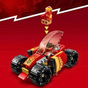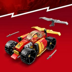 Deixe os fãs de ninja com mais de 6 anos desfrutarem de emoções rápidas com o conjunto de construção Ninja Race Car EVO (71780) de Kai. Este brinquedo de carro LEGO NINJAGO apresenta um cockpit de abertura e um impressionante spoiler de asa dourada na parte de trás. Ele pode ser atualizado de um veículo off-road para um carro de corrida de rua trocando suas 4 rodas.