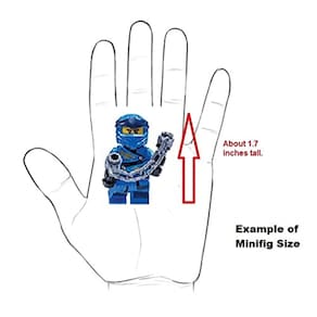 Esta figura de LEGO é cuidadosamente moldada e pintada para se parecer com o personagem real. Tem cerca de 2 polegadas de altura e é compatível com qualquer outro conjunto LEGO padrão. As figuras vêm com tudo mostrado na imagem.
