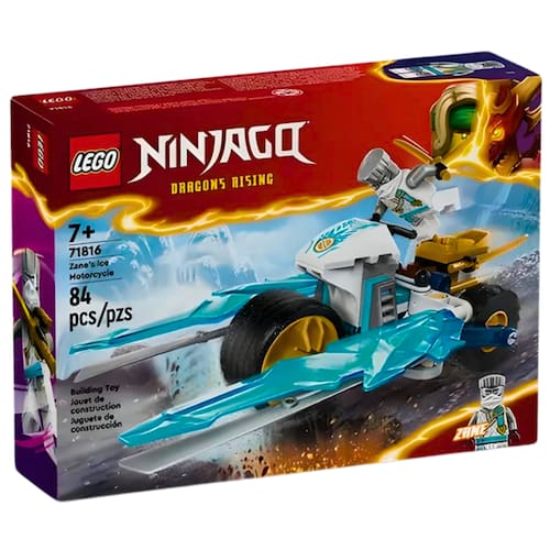 Descrição do produto : O brinquedo LEGO NINJAGO Motocicleta de Gelo do Zane (71816) permite que meninos e meninas maiores de 7 anos recriem a ação acelerada da temporada 2 da série de TV NINJAGO Ascensão dos Dragões. Este brinquedo ninja para crianças inclui uma motocicleta NINJAGO com rodas móveis, lâminas douradas e suspensão no pneu traseiro. Quando as crianças pressionam o pneu, as lâminas de gelo do modo ataque legal se desdobram em ambos os lados. Este impressionante brinquedo de aventura vem com uma minifigura do Zane para andar na garupa da moto. O Zane está vestido com sua armadura de torneio nunca antes vista e segura 2 acessórios de catanas para incontáveis horas de ação no mundo de NINJAGO. : Detalhes técnicos : Marca: Lego : Referência: 71816 : Idade recomendada: 7 : Quantidade de peças: 84 : Possui Luzes: Não : Possui Sons: Não : Dimensões aproximadas da embalagem: 19 x 14 x 4 cm (A x L x C) : Ean: 673419389822 :