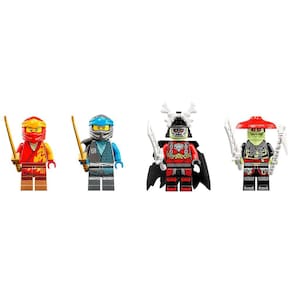 Este conjunto de construção inclui 4 minifiguras: o Kai e a Nya, ambos armados com espadas, o Rei Ossudo com sua própria espada e um Caçador Ossudo com uma picareta de osso e uma espada. Por superar o desafio, as crianças são recompensadas com uma bandeira de Foco colecionável que pode ser exibida na motocicleta ninja.