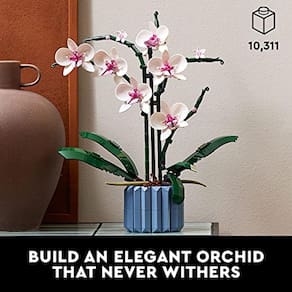 PRODUTO INTERNACIONAL. Desperte sua criatividade e monte sua própria orquídea para decorar sua casa com o modelo LEGO Orquídea (10311) para adultos. Baseado em uma orquídea real, o modelo possui flores brancas e rosas, 2 raízes de ar errantes e 5 folhas na base, criando uma exposição autêntica.