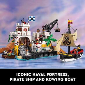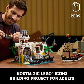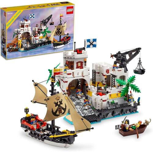 Redescubra um mundo de Piratas LEGO com o conjunto de construção LEGO Icons Fortaleza de Eldorado 10320 para adultos. Este tributo ao icônico modelo dos anos 80 6276 inclui novos recursos que vão emocionar os fãs da linha LEGO Pirates. Desfrute de uma experiência de construção consciente Desvende tesouros ocultos enquanto você constrói a icônica fortaleza, peça por peça, incluindo o escritório do almirante, uma prisão de piratas e uma série de espaços secretos. Combine as seções de quartos modulares para criar diferentes configurações e viva cenas de batalhas épicas com canhões funcionais, 8 minifiguras e um galeão pirata legal com velas de tecido estampado. Faça tempo para você Passe um tempo de qualidade com conjuntos LEGO de qualidade premium para adultos. Este conjunto de construção do tema LEGO Piratas é um projeto imersivo para você ou um ótimo presente para fãs de conjuntos LEGO clássicos