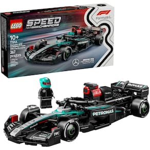 O modelo de carro de F1 apresenta um cockpit que abre levantando a barra de halo, uma asa traseira, suspensão wishbone, adesivos de patrocinadores e pneus traseiros mais largos com a inscrição "Pirelli". O modelo montável também vem com uma minifigura de piloto em uma roupa da Mercedes-AMG PETRONAS F1 Team e um capacete alado para colocar dentro do cockpit e nas corridas de palco. Os conjuntos LEGO Speed ??Champions permitem que crianças e fãs de corrida construam modelos dos veículos mais icônicos do mundo, incluindo outros carros de F1 (vendidos separadamente) da temporada de campeonato de 2024. Cada conjunto de carro pode ser criado usando instruções de construção impressas ou o aplicativo LEGO Builder para guiar você e seu filho em uma aventura de construção agradável. Veículo de brinquedo da equipe Mercedes-AMG PETRONAS F1® para crianças