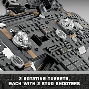Este brinquedo de nave estelar colecionável LEGO Star Wars ™ apresenta motores giratórios para pouso/decolagem ou voo, 2 atiradores de pinos, 2 torres giratórias, cada uma com 2 atiradores de pinos e uma garra de agarrar. Ele tem assentos para todos os 5 personagens LEGO Star Wars incluídos (a minifigura Jod LEGO na cabine e Wim, Fern, KB e Neel no compartimento de passageiros), além de armazenamento para as 4 tochas montáveis ??e outras cargas. Há também uma mesa de cozinha e uma cama, além de elementos acessórios, incluindo frutas e um walkie-talkie para inspirar brincadeiras criativas. Uma ótima ideia de presente LEGO para fãs de Star Wars e colecionadores de memorabilia de Star Wars com mais de 10 anos, este conjunto de construção de brinquedo de veículo vem com instruções passo a passo. Não deixe de conferir o aplicativo LEGO Builder para ferramentas de visualização digital de zoom e rotação para adicionar à experiência criativa. Brinquedo de nave estelar Star Wars : Skeleton Crew para construir – As crianças podem brincar de ser heróis em suas próprias missões a bordo do Onyx Cinder com este brinquedo detalhado de veículo construído com tijolos 5 personagens LEGO® Star Wars ™ – Uma minifigura LEGO Jod com um blaster de estilo vintage, além de minifiguras LEGO Wim, KB, Fern e Neel, cada uma com um acessório de tocha montável Características autênticas – Um cockpit, compartimento com assentos para 4 minifiguras LEGO®, motores giratórios para pouso/decolagem ou voo, 2 atiradores de pinos e 2 torres giratórias, cada uma com 2 atiradores de pinos Jogo criativo ilimitado