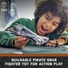 Convide as crianças a descobrirem toda uma nova galáxia de aventuras com um modelo de brinquedo construído com tijolos LEGO do Caça Pirata (75346) que estreou na 3 temporada de Star Wars: The Mandalorian. O caça estelar construível apresenta um cockpit para minifigura que abre, 2 lançadores de pinos e um compartimento contendo um elemento de detonador térmico. Também há 2 minifiguras LEGO novas de maio de 2023 um Piloto de Caça Pirata com uma pistola blaster e Vane com uma espada para aumentar as possibilidades de brincadeiras de ação. Este conjunto é um presente único para fãs de Star Wars: The Mandalorian a partir de 8 anos. As crianças podem desfrutar de uma aventura de construção fácil e intuitiva com o aplicativo LEGO Builder. Aqui, elas podem ampliar e girar os modelos em 3D, salvar conjuntos e acompanhar seu progresso. O Grupo LEGO tem recriado starships, veículos, locais e personagens icônicos do universo Star Wars desde 1999, e há uma enorme variedade de conjuntos de construção para encantar fãs de todas as idades. Contém 285 peças
